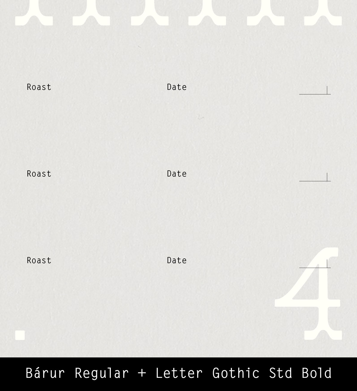 What was missing from our Bárur font pairing examples? A monospaced sans serif. Although we’re using the bold cut of Letter Gothic, it retains such an understated, fine spirit. An excellent pairing for a specialty coffee brand with scientific roots.