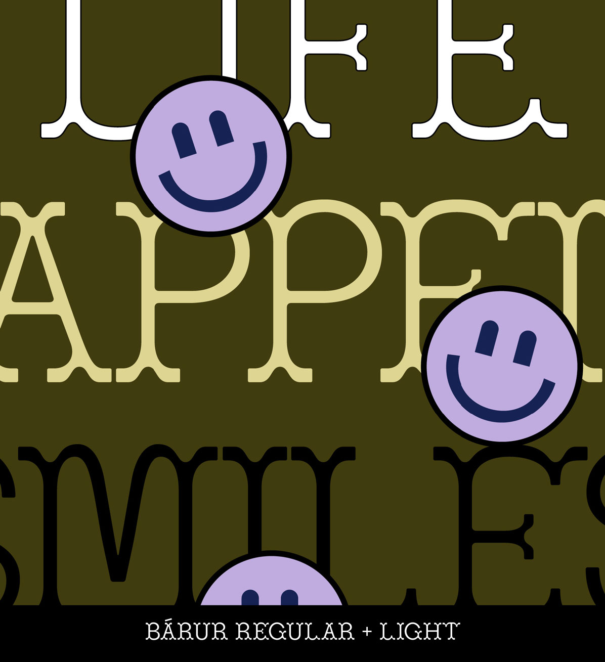 See for example our Smiley graphics using Bárur Light, or the Italian Edit set in Bárur Regular. Happy moods, nostalgic moments, or sun-soaked summer feelings—there’s a lot you can do with this typeface.
