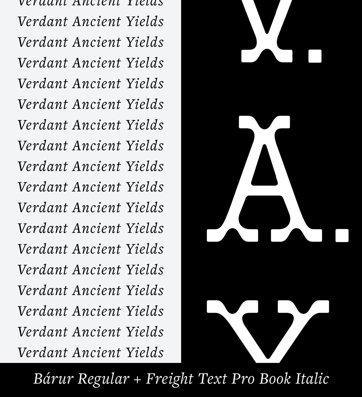 using Bárur Regular + Freight Text Pro Book Italic by The Freight Collection